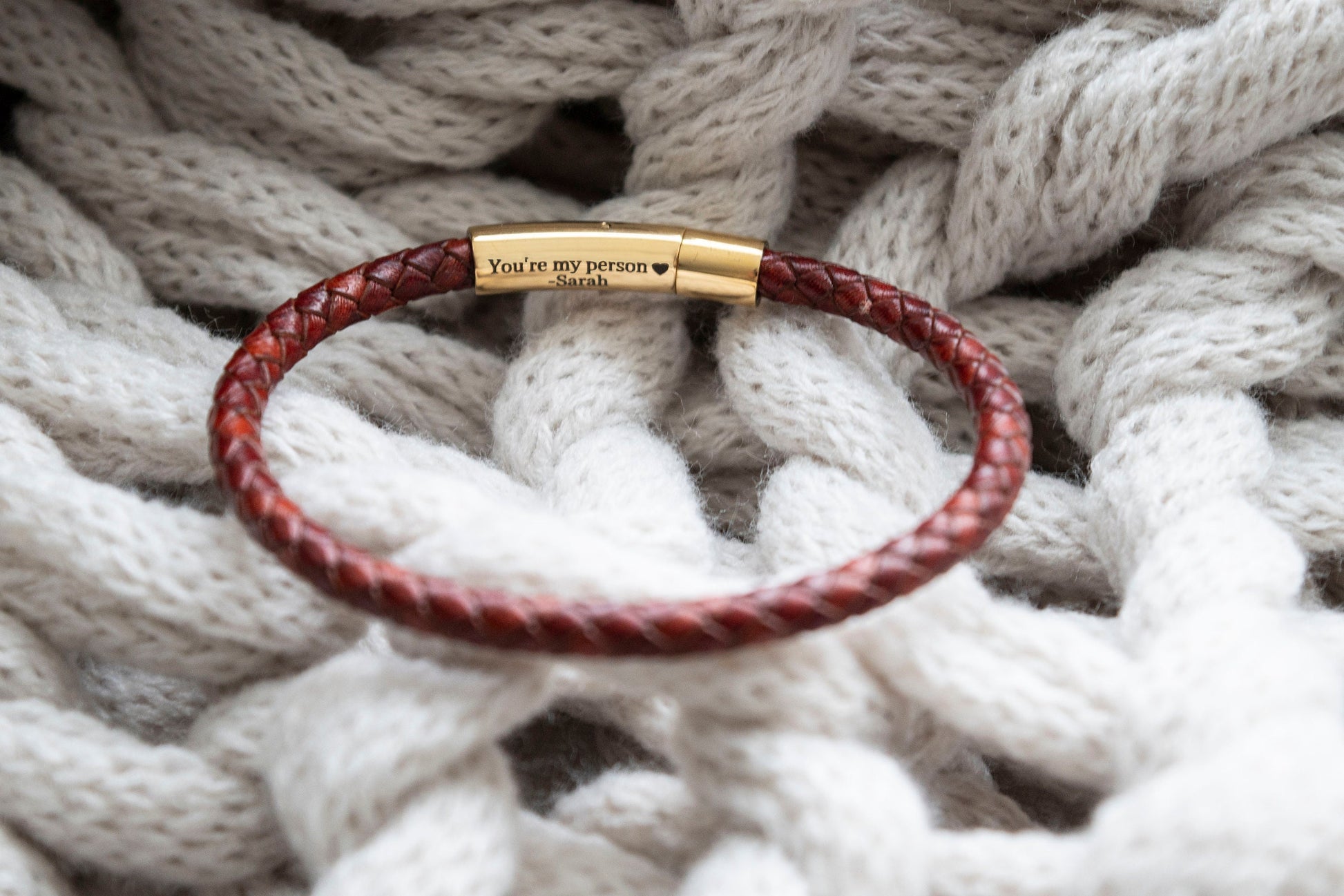 Gold Men's Hidden Message Bracelet, Leather bracelet