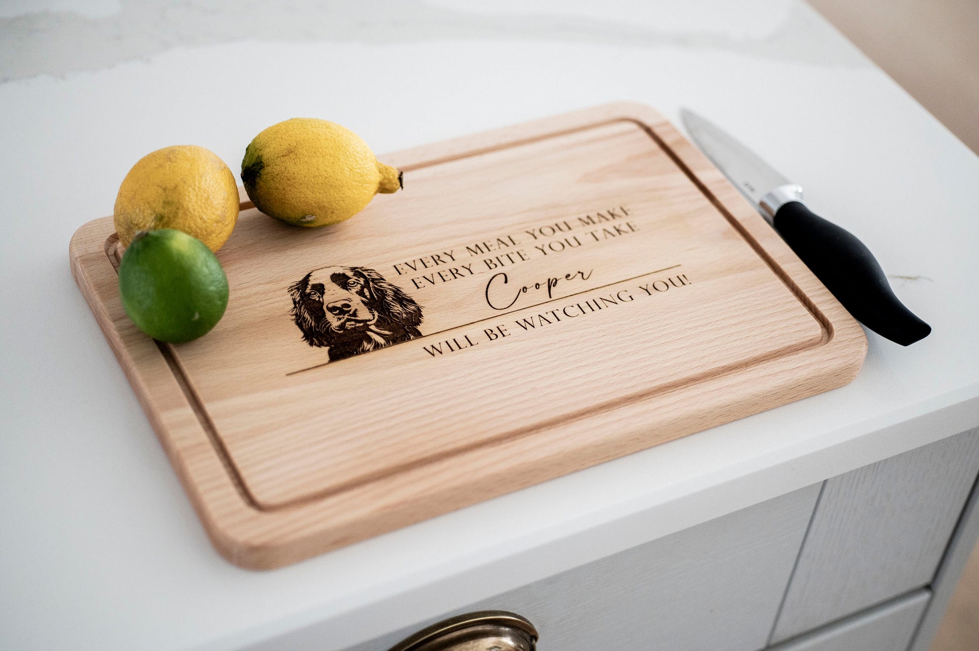 Details: Solid Beech wooden board, 30 x 20 cm (11.8 x 7.8 inches) Engraved for a long lasting finish. Finished with food safe mineral oil.