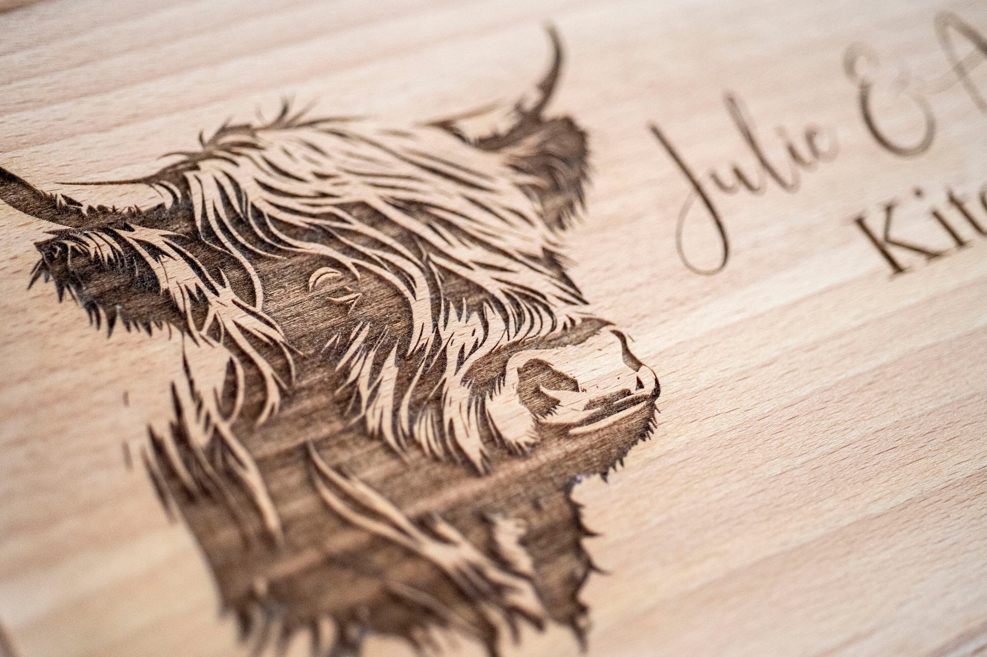 A Gorgeous personalised Highland Cow cutting / serving board.