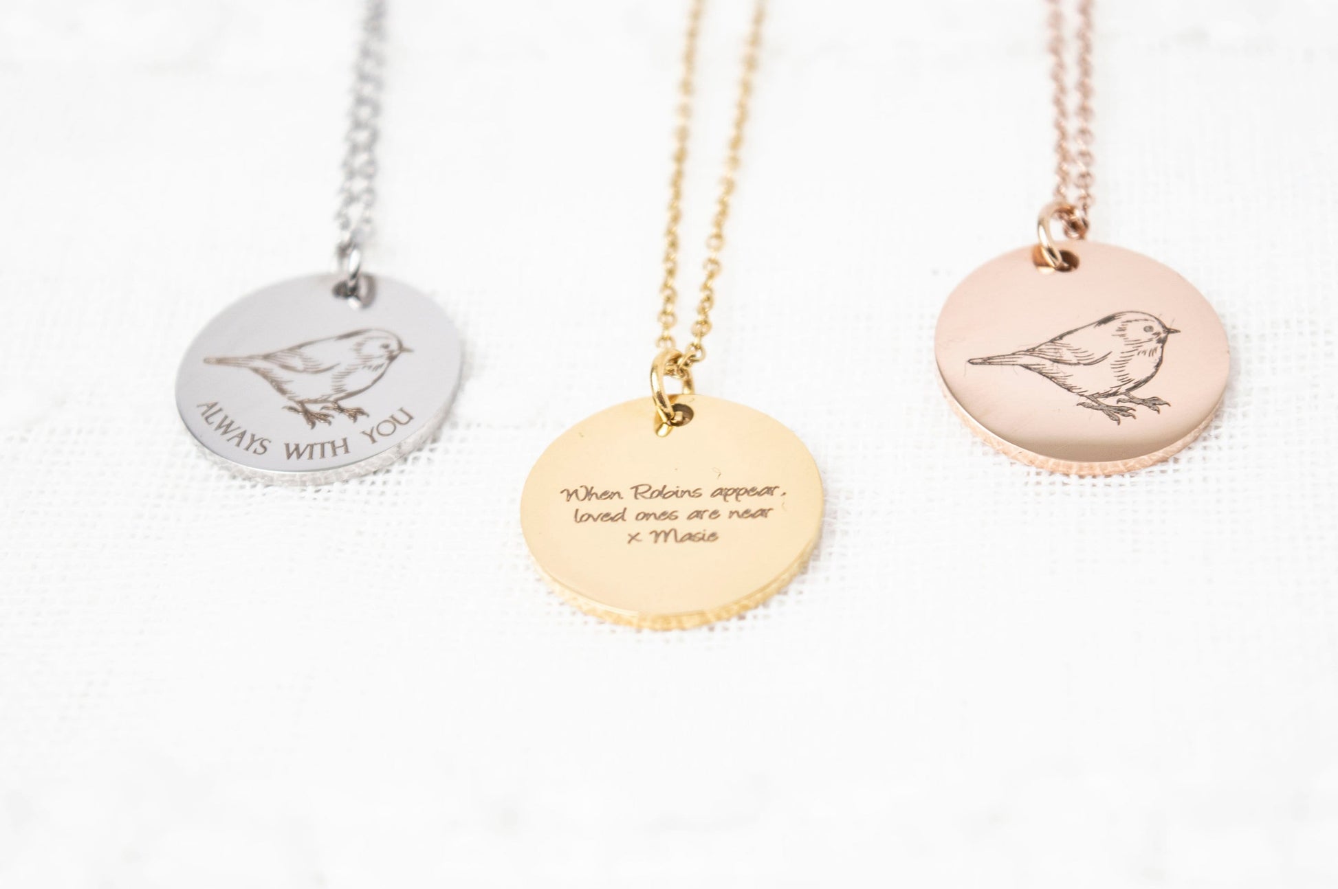 A gorgeous Robin Necklace available in rose gold, gold and silver colored stainless steel.