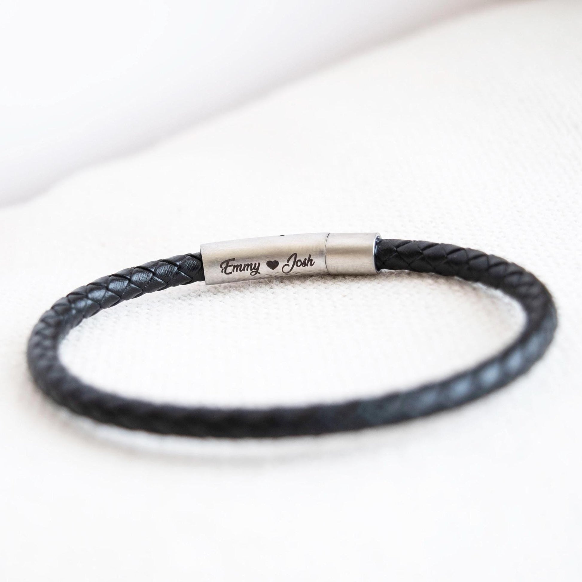 Men's Hidden Message Leather Bracelet, Matte Silver